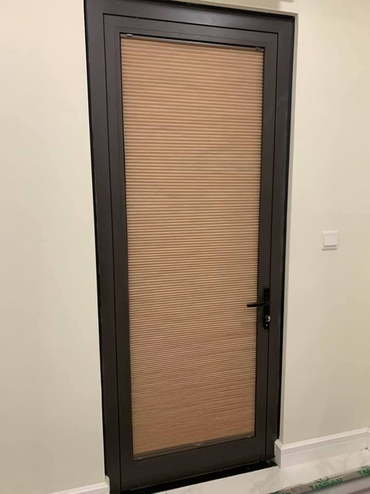 Rèm tổ ong gắn trên cánh kính kiểu Lùa trên